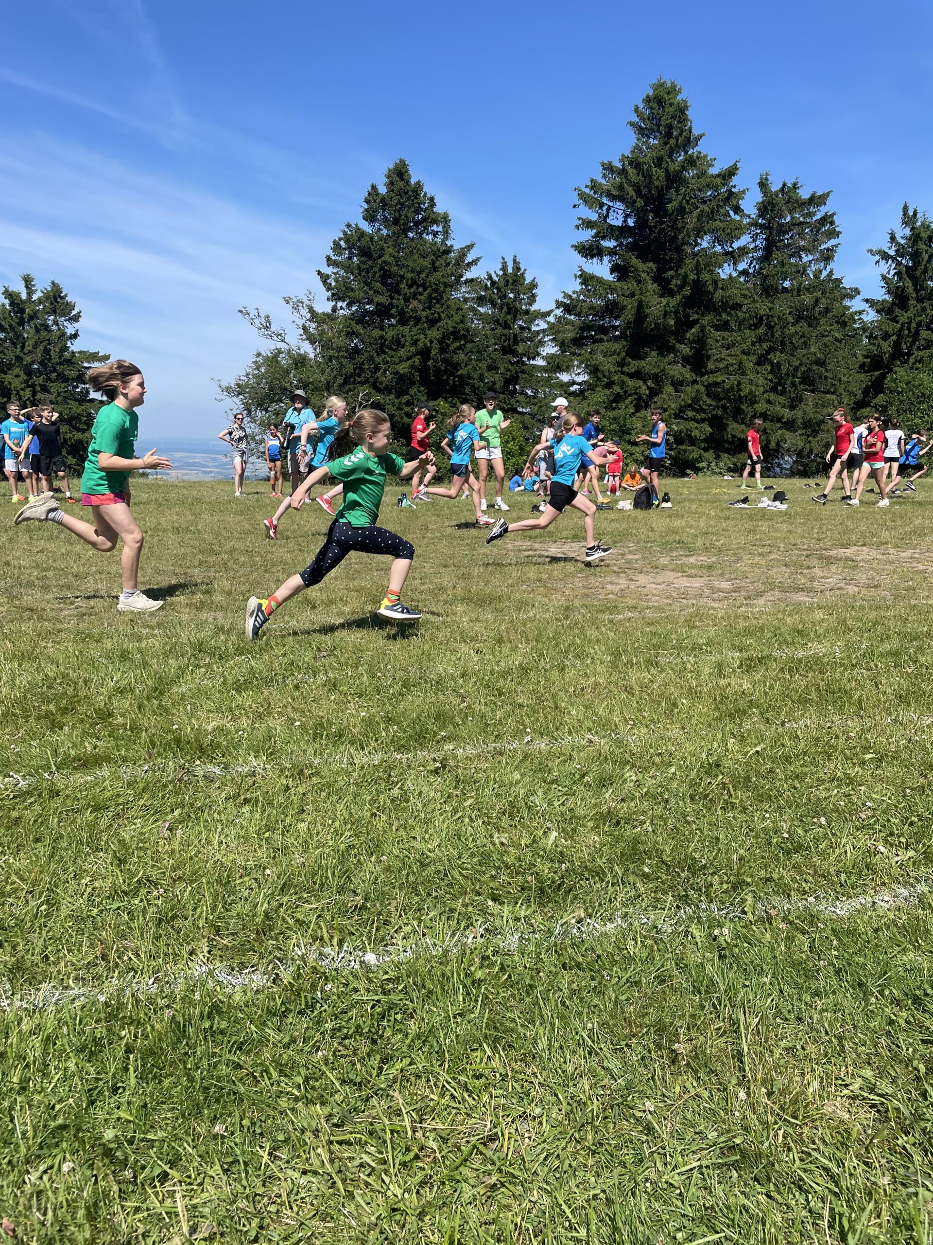 Trotz Sonnenschein und Hitze bestritten unsere Sportler*innen einen erfolgreichen Wettkampfvormittag. Nach Sprints über die Wiese, Weitwurf bergauf und Weitsprung in den Sandkasten, waren aber alle so geschafft, dass wir dieses Jahr die Staffelläufe links liegen ließen. Nach so einem heißten Sporttag, ruft das wohlverdiente Freibad dann doch lauter.